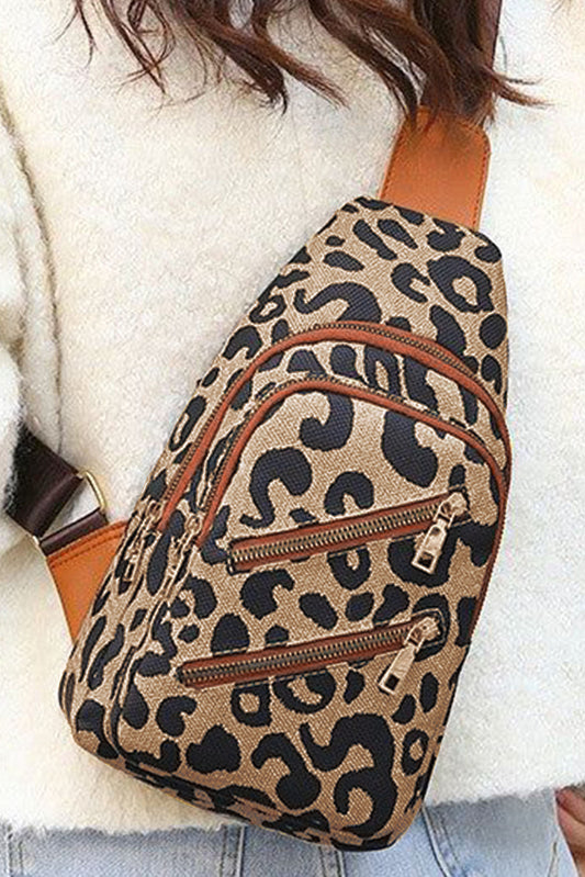 Leopard Twin Zipper Crossbody Bag