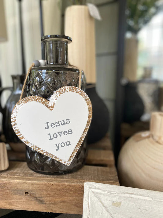 Jesus Loves 3D Hanging Heart w/ Beads